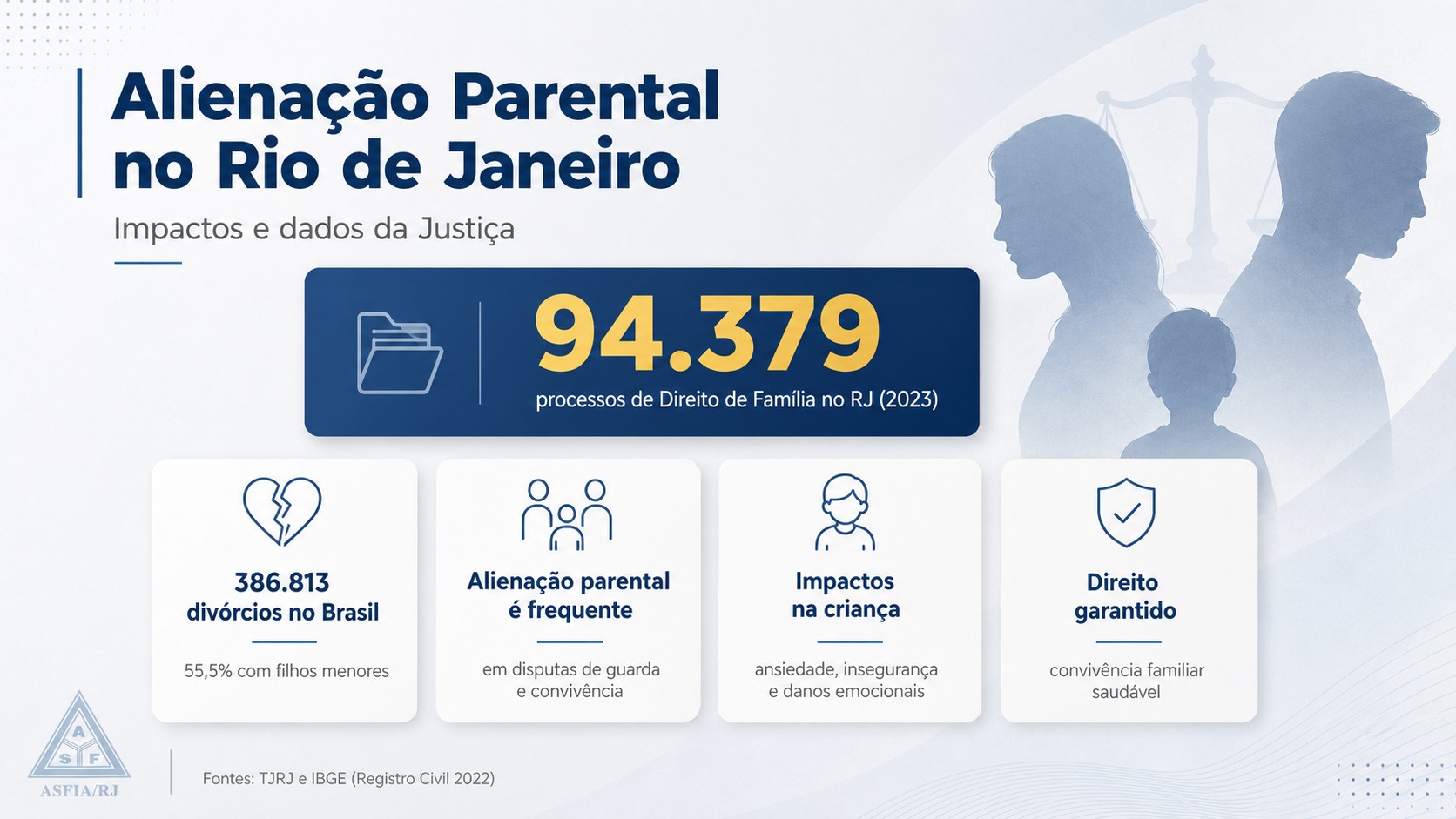 Dados do Tribunal de Justiça do Estado do Rio de Janeiro mostram que foram distribuídos 94.379 novos processos na área de Direito de Família em 2023 no estado, incluindo ações de guarda, regulamentação de visitas e disputas parentais.